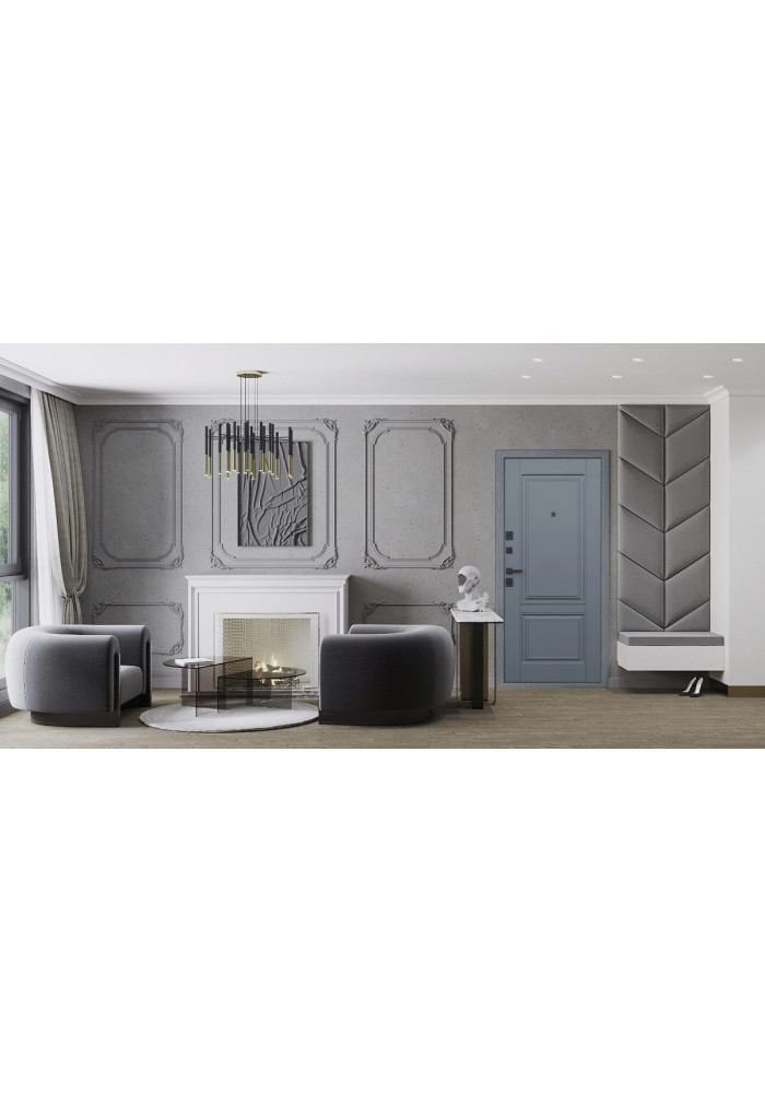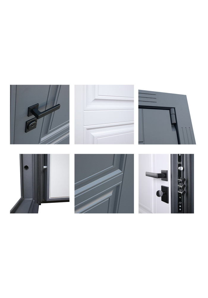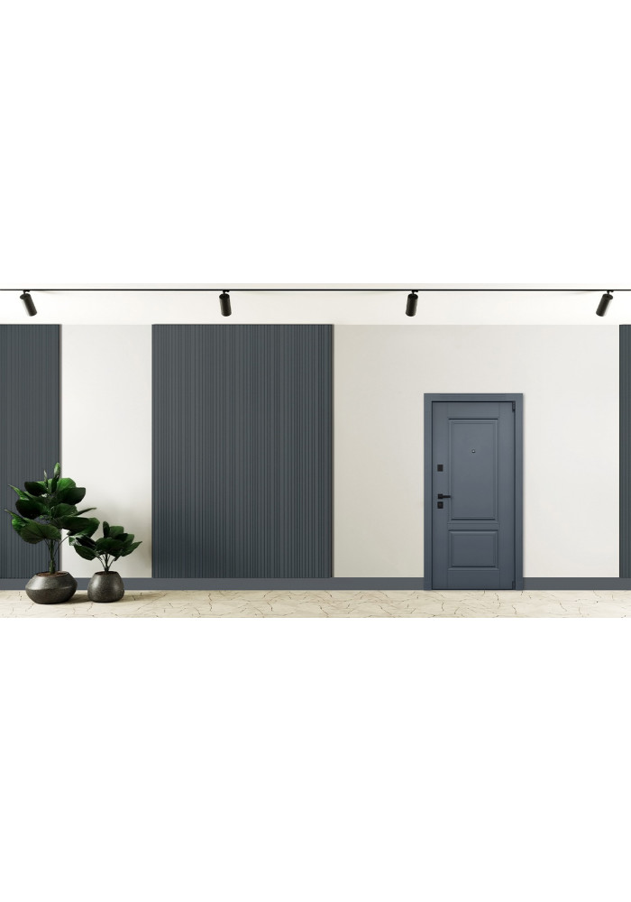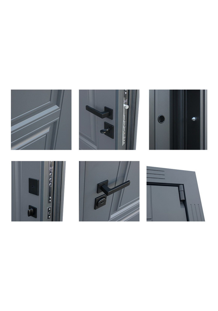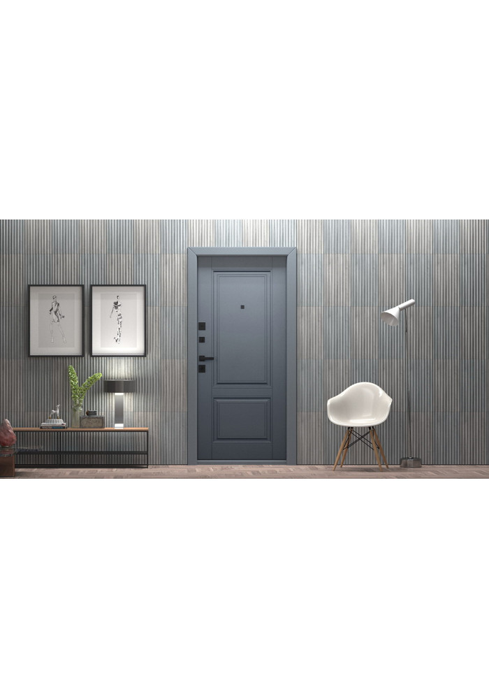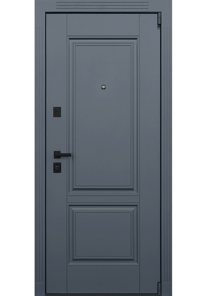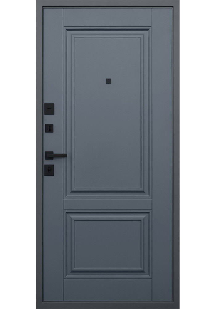 - Наружный лист металла: Лист металла 2 мм. Панель МДФ 16 мм. Объемная фрезеровка. Цвет "графит". Наличник МДФ: толщина 16 мм, ширина 85 мм.