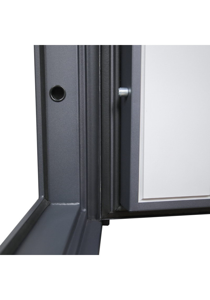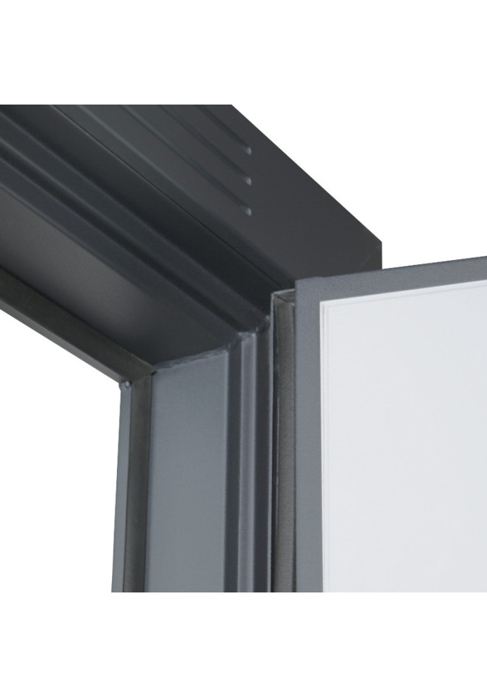 - Дверная коробка: Короб утолщённый, гнутый профиль. 3 контура уплотнения. Толщина (глубина) коробки 117 мм.