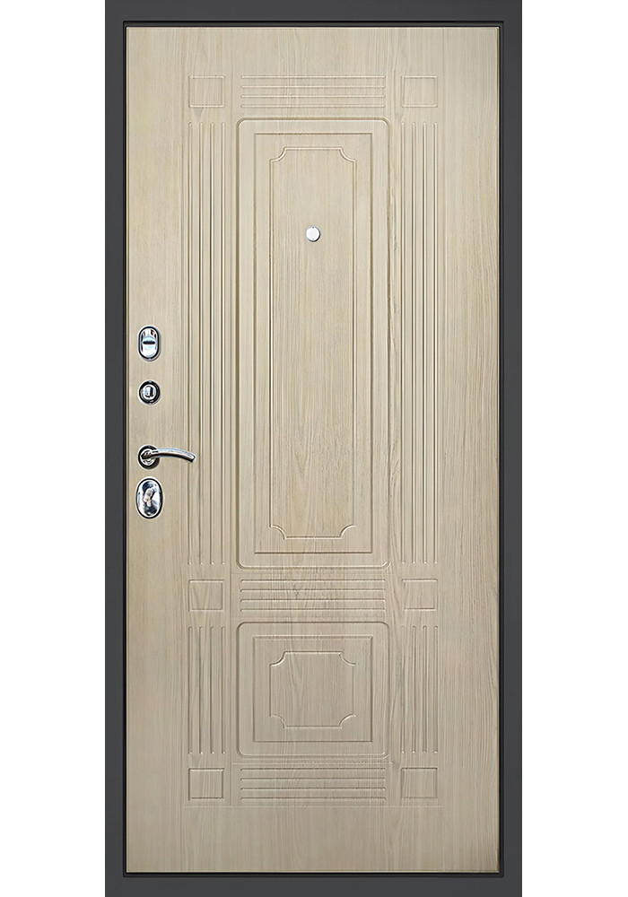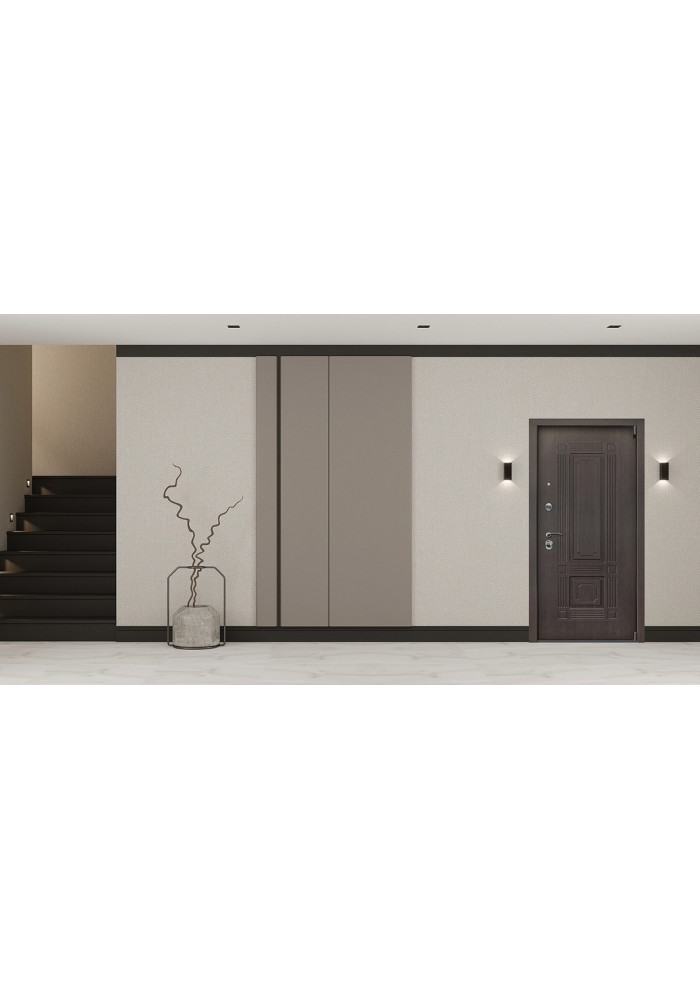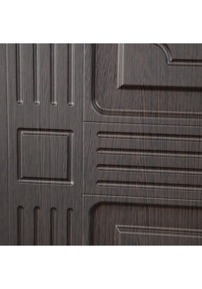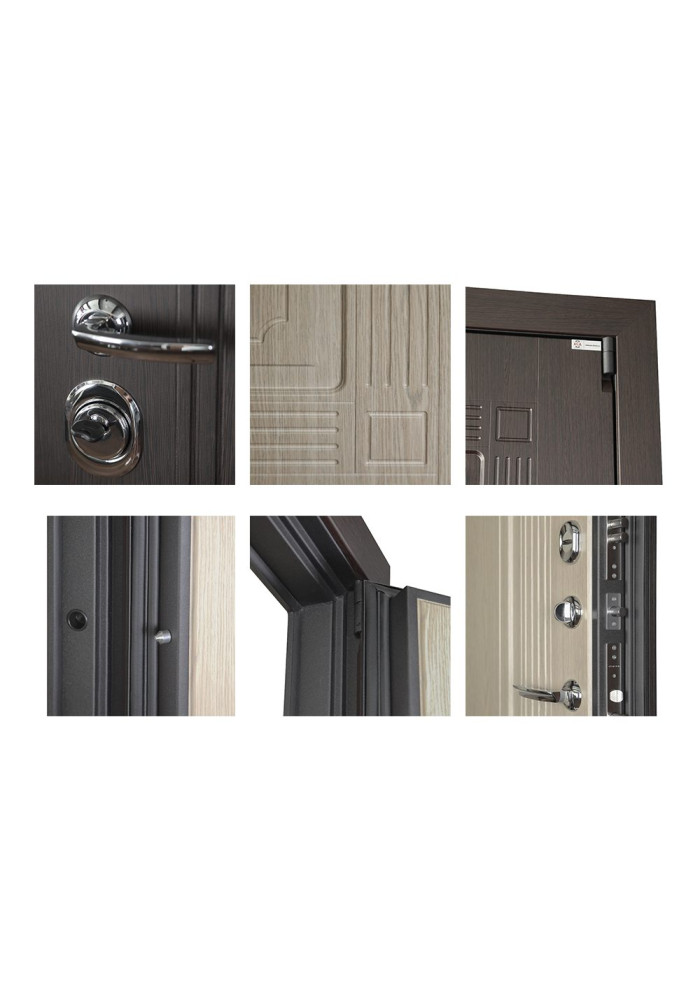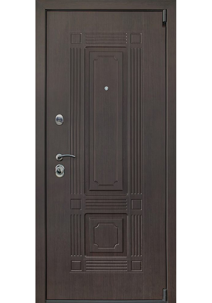 - Наружный лист металла: Лист металла 2 мм. Панель МДФ 16 мм. Объемная фрезеровка. Цвет "венге". Наличник МДФ 80 мм.