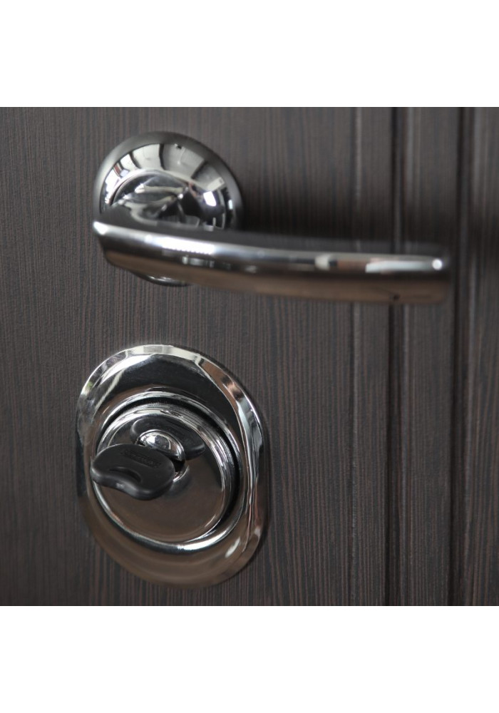 - Фурнитура: Ручка, ночная задвижка, глазок на круглой розетке. Цвет "хром". Смотрите также: ДВЕРНЫЕ ГАДЖЕТЫ